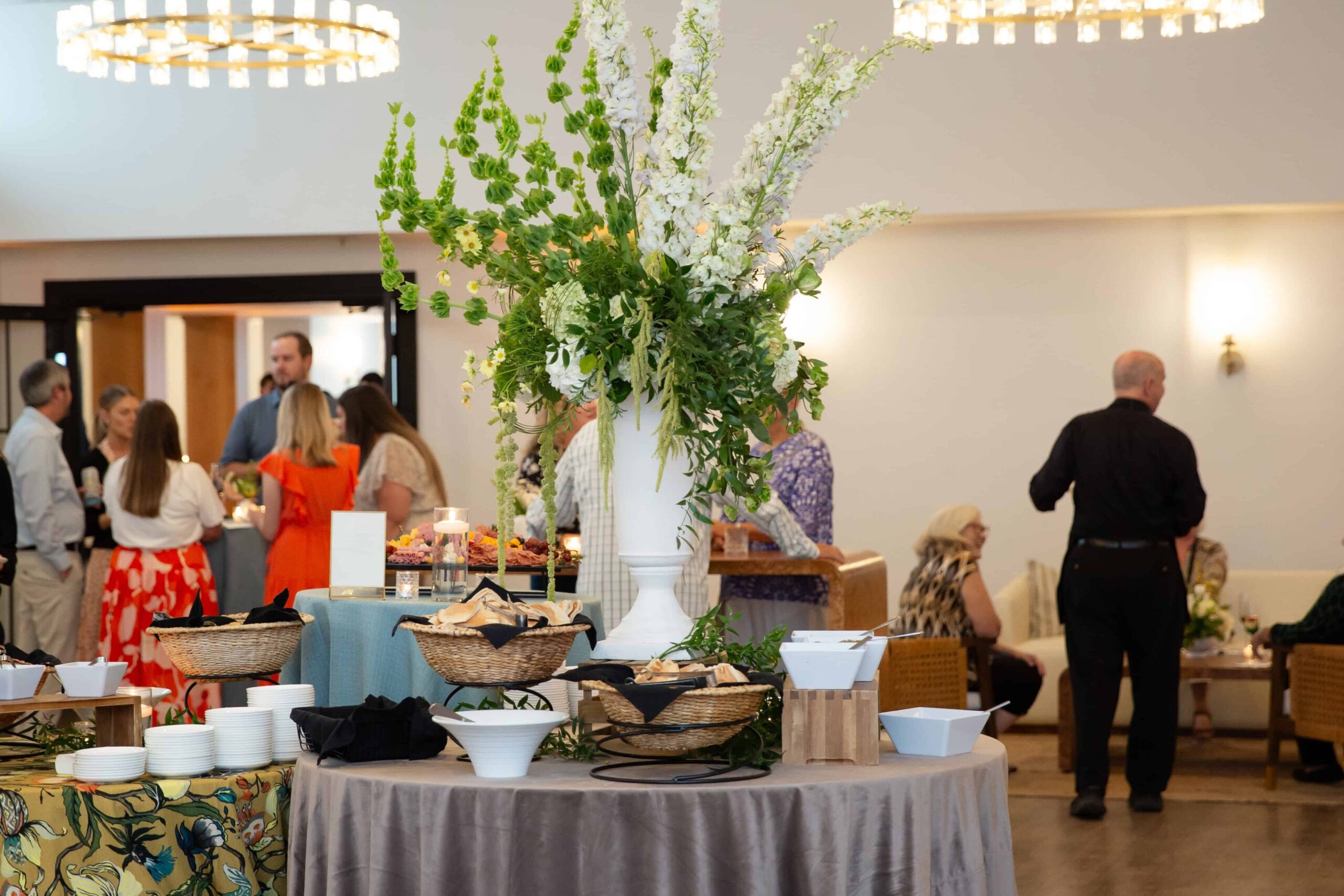 I love it when the event organizers elevate the guest experience by renting lounge furniture and custom bars, as well as hiring a florist to supply beautiful flower arrangements that go with the theme of the event. For this event, the rentals were provided by Curated Events, a luxury event rental and production company. The florals were provided by Once Gathered, a design studio specializing in capturing unique stories through florals.